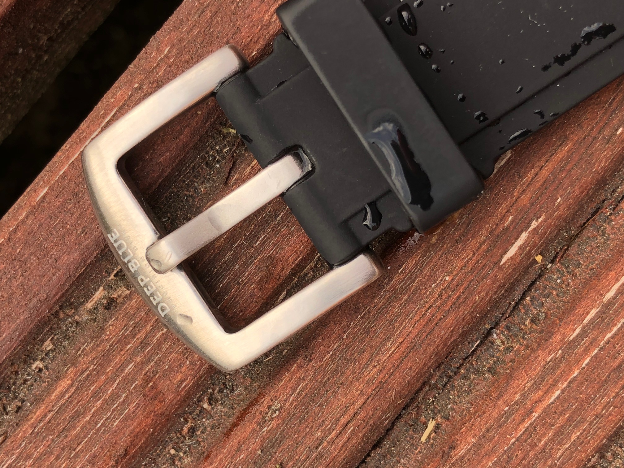 The strap I chose was the moulded rubber - I like my straps to meet the case without a gap, but the bracelet was too expensive on this watch and I read reviews that said that it doesn’t quite fit as well as it might. The rubber is comfortable, high-quality and matches the watch perfectly. I think it’s the best choice - even if you like the look of the NATO straps you can pick them up on eBay for less than a fiver and so you may as well get the best OEM strap for the price. The Deep Blue NATO Diver takes a 22mm watch strap if you are shopping for one. The buckle is, well, fine. It’s laser engraved with “Deep Blue” and it does the job.