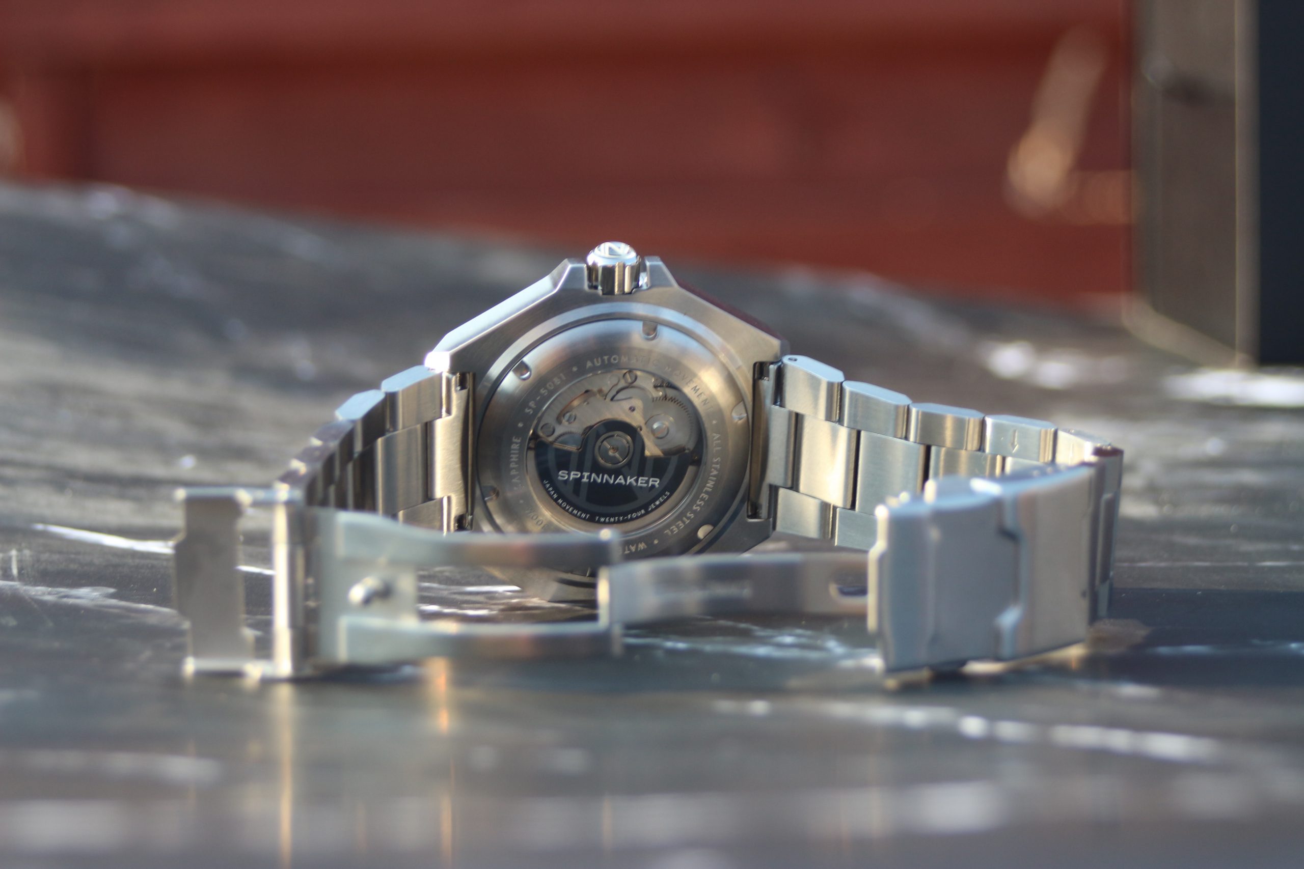 The negatives? It feels a bit stiffer and “scratchier” than other Spinnaker bracelets. It felt like it needed a bath in baby oil, whereas others have felt silky smooth out of the box. I always point out that Spinnaker’s stock clasp could do with more than three micro-adjustments, but in this case, I did manage to find the perfect fit after removing three links.