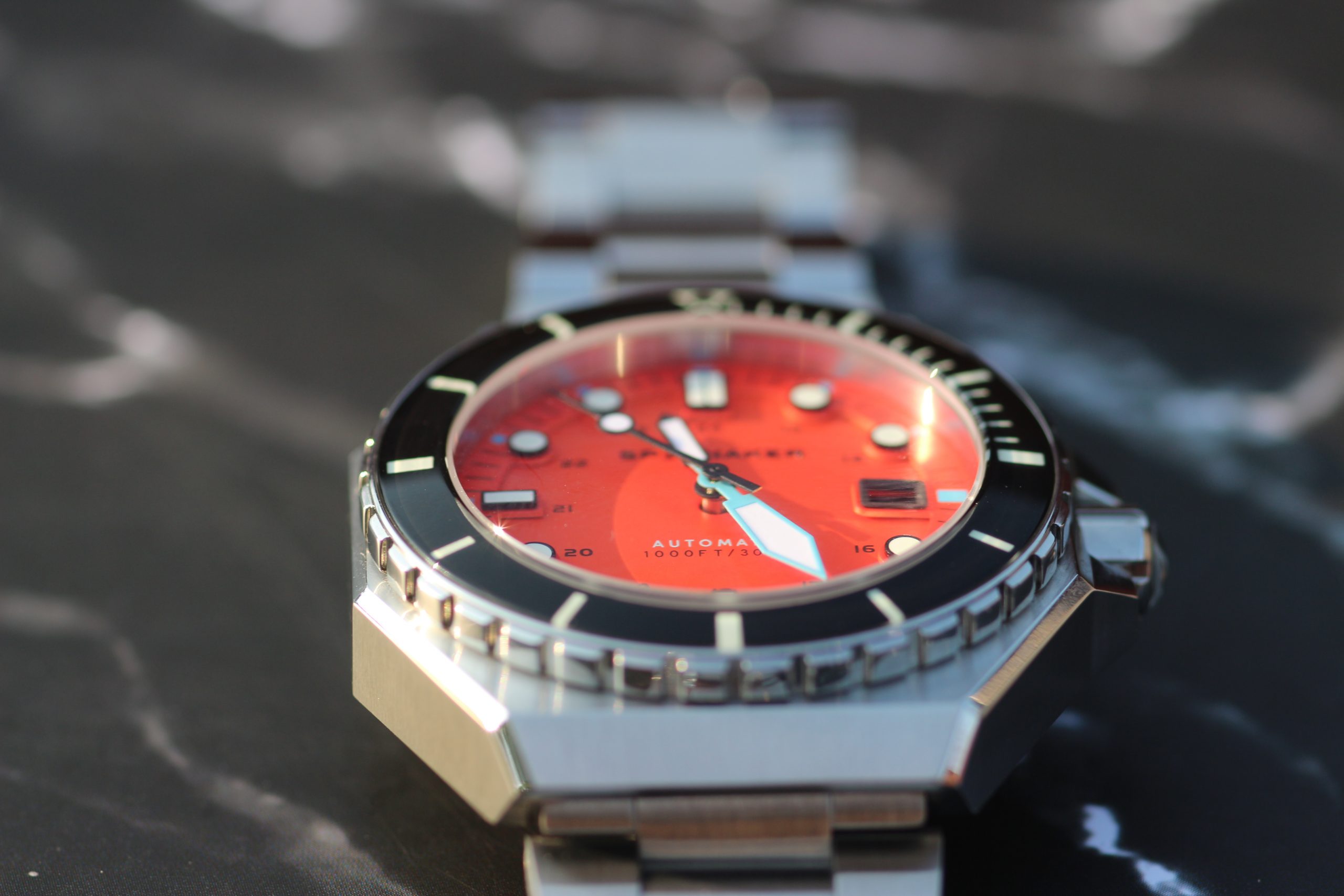 The dial is the star of the show here, finished in a luscious orange colour that looked superb as I photographed the Spinnaker Dumas on the hottest day of the year so far. The multi-layered construction looks great, and everything lined up (at least after I put the bezel back to 12 O’clock after taking the wrist shot!)